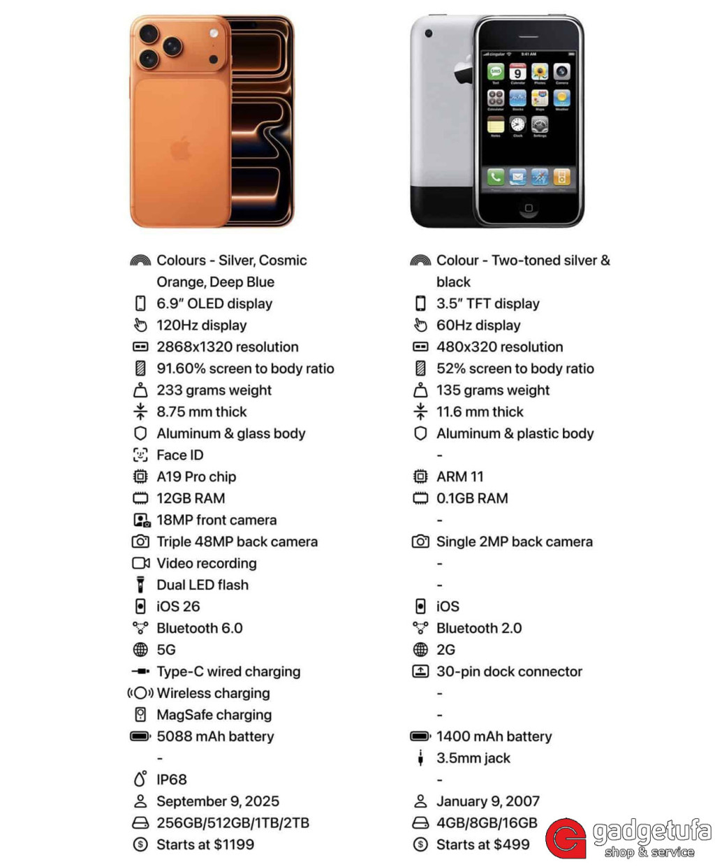 Если учесть инфляцию, стартовая цена iPhone 2007 года $499 эквивалентна примерно $750 сегодня. Однако цена флагманского iPhone 17 Pro Max ($1199) выросла намного меньше, чем его функциональность. Оригинальный iPhone изменил мир, заложив идеальные основы. Современный же 17 Pro Max незаменим, поскольку он превосходит конкурентов и успешно заменяет собой до десятка специализированных устройств. И Apple продолжает повышать планку, именно поэтому ремонт iPhone остаётся не просто услугой, а проявлением уважения к технологии, которая нас объединила.