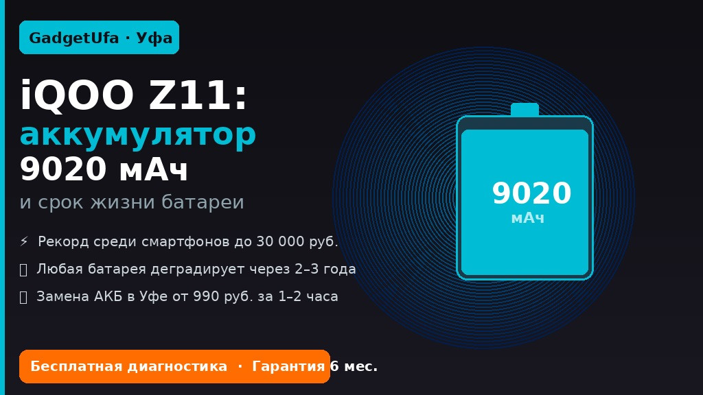 iQOO Z11 стоит от 30 000 рублей. Замена аккумулятора обойдётся в 1 200–1 900 рублей. Замена треснувшего экрана — 2 500–3 500 рублей. Ремонт в 10–15 раз дешевле покупки нового смартфона — особенно когда устройство относительно новое и всё остальное работает отлично.